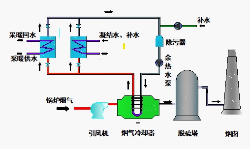 使用復合管換熱器回收煙氣余熱,最大的優勢:即便換熱器系統出現故障,此時換熱器即可作為煙道使用,也可在線維修,不影響鍋爐系統的運行。1)直接式系統:復合管換熱器,安裝在脫硫塔煙氣入口的水平煙道上,直接預熱采暖回水、凝結水、補水或原水。此系統,投資最少,回收期最短。